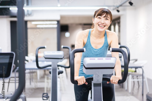 © maroke, Obraz premium ジムでマシーントレーニングをする若い女性