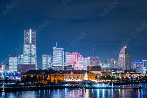 © Kazu8, Obraz premium 神奈川県横浜市大さん橋から見た全館点灯したみなとみらいの夜景