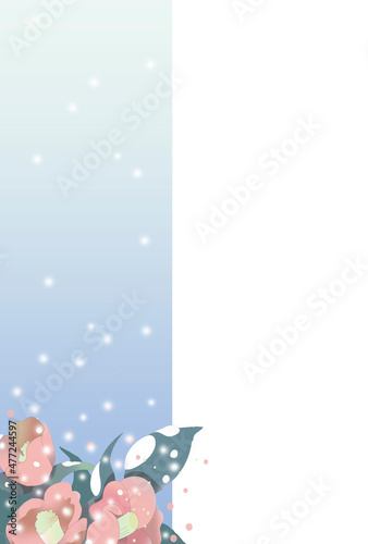 Fototapeta premium 喪中ハガキイラスト 素材雪降る日の寒椿