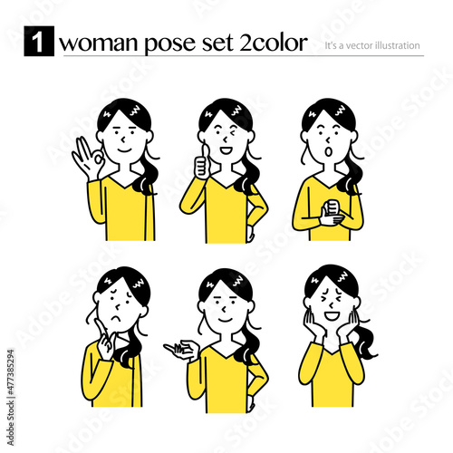 © kashiosu, Naklejka premium 女性上半身のポーズセット
