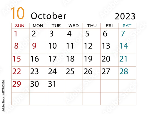 Obraz premium 2023年カレンダー 10月