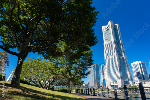 Obraz premium 神奈川県横浜市 汽車道とみなとみらいの街並み
