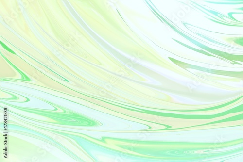 Obraz premium 明るい緑のマーブル模様 テクスチャ 背景 流れ パステルカラー グリーン 淡い 波