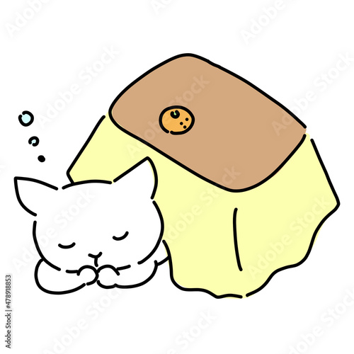 © JumsiCat, Fototapeta premium コタツで眠る猫のゆるいイラスト