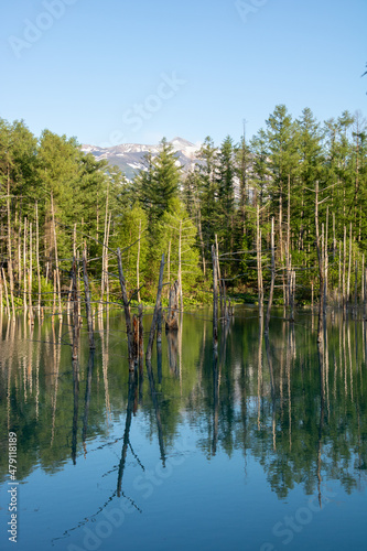 © まり子 佐藤, Obraz premium 水面に映る雑木林