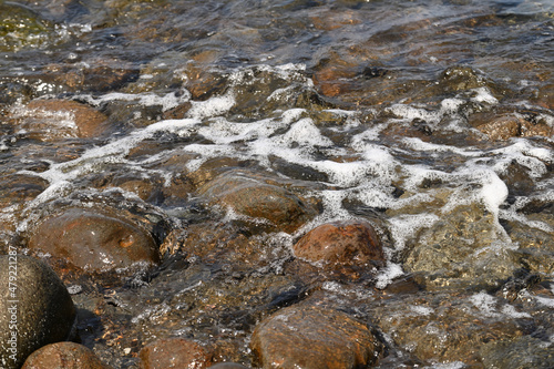 Obraz premium 岩の海岸で透き通った海水の波打ち際