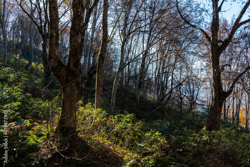 Naklejka premium 落葉し始めた晩秋のブナの木々