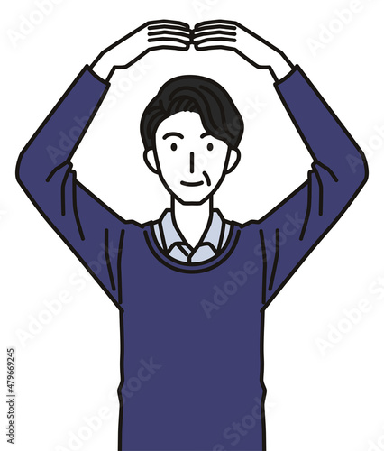 © 古永ユウカ, Obraz premium 手でまるのジェスチャーをする40代・50代の男性