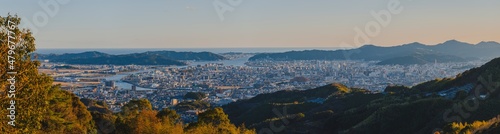 © Ryu, Fototapeta premium よく晴れた日の高知市全景 パノラマ