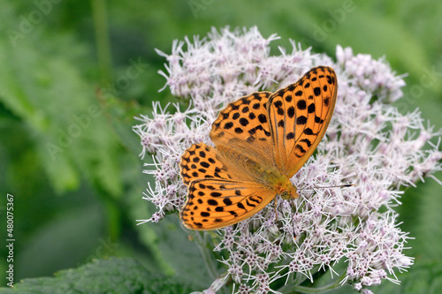 Obraz premium 吸蜜するオオウラギンスジヒョウモンの雄(北海道・層雲峡)