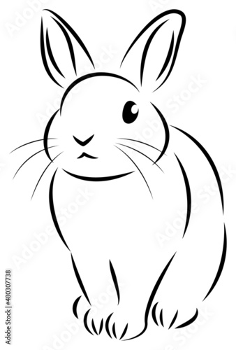 Obraz premium 絵筆で描いた墨絵風のお洒落なウサギのイラスト 手描きのアナログ風イラスト ベクター