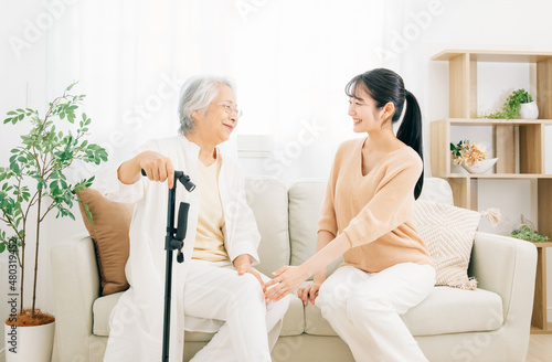 Obraz premium 高齢者の女性と若い女性(介護・笑顔)