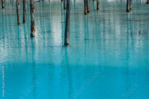© kinpouge, Obraz premium さざ波が立つ青い池の水面 美瑛町