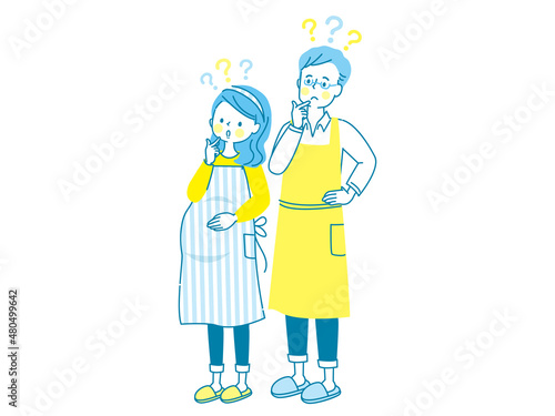 © とーふねこ, Obraz premium 疑問を持つ若い妊婦さんとエプロン姿の夫