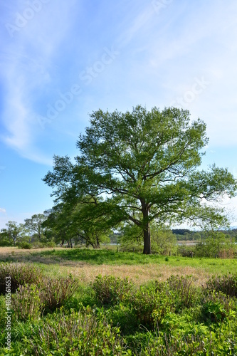 © 阿部 賢治, Fototapeta premium 青空の広い草原の大きな木