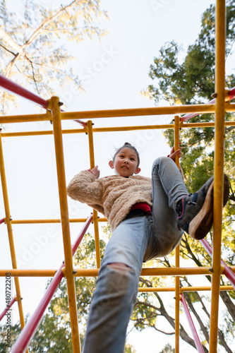 © hakase420, Obraz premium ジャングルジムで遊ぶ少女