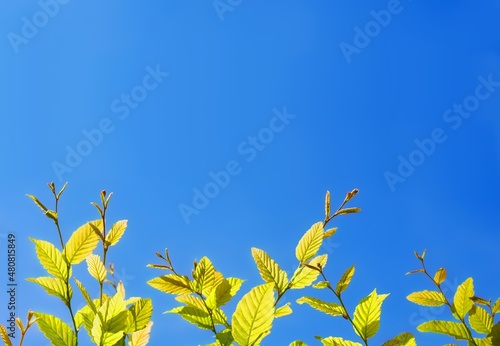 Obraz premium 青空と芽吹く草木
