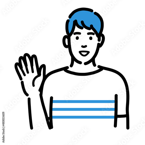 © トワトワ, Obraz premium 手を挙げて笑顔で挨拶している男性