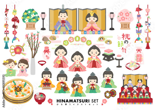 © ニイツ, Fototapeta premium ひな祭りのかわいいイラストセット/線画なし