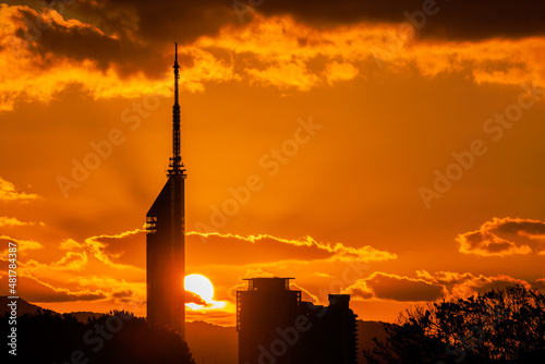© 雄司 北山, Obraz premium 夕日と福岡タワー