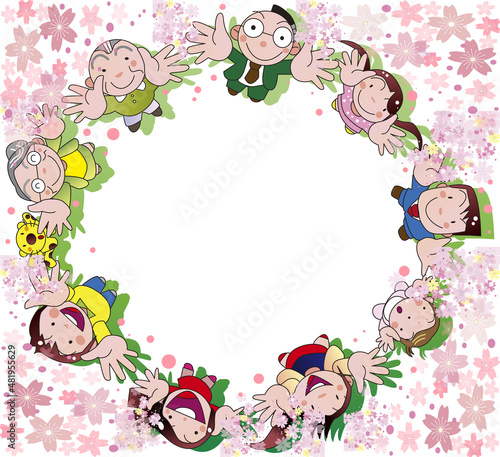 Obraz premium 桜を見る人々の輪