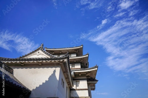 © Scott Mirror, Obraz premium 青空バックに見上げる貴重な櫓の情景@高松城跡、香川