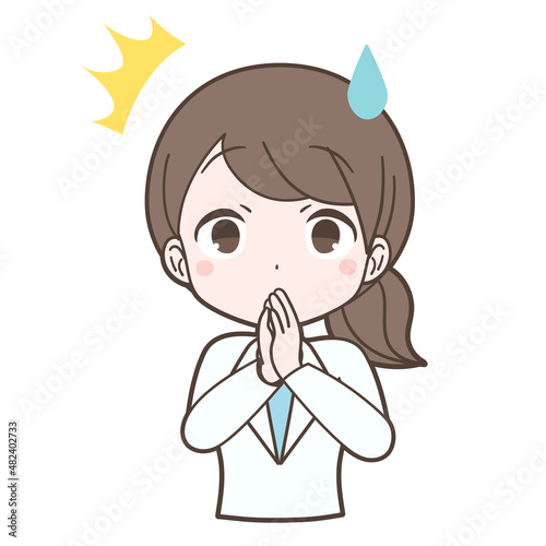 Obraz premium 白衣姿で驚く若い女性