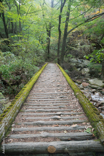 © STUDIOO, Obraz premium 가을 산 숲 나무 낙엽