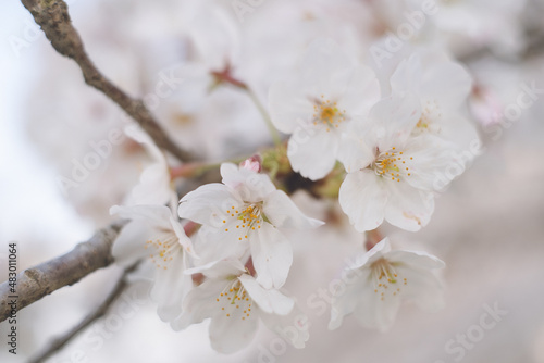 Obraz premium ソメイヨシノの桜の花が満開 春のお花見スポット 日本九州福岡県久留米市