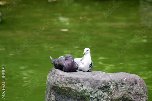 Obraz premium 神戸しあわせの森、番の鳩と亀たち