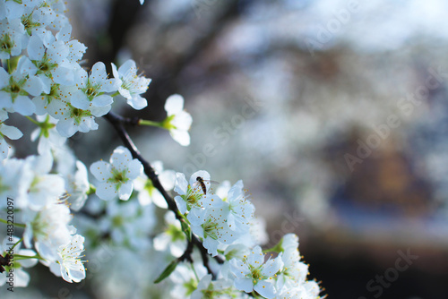 © のら, Obraz premium 春に咲く白いスモモの花とハチ