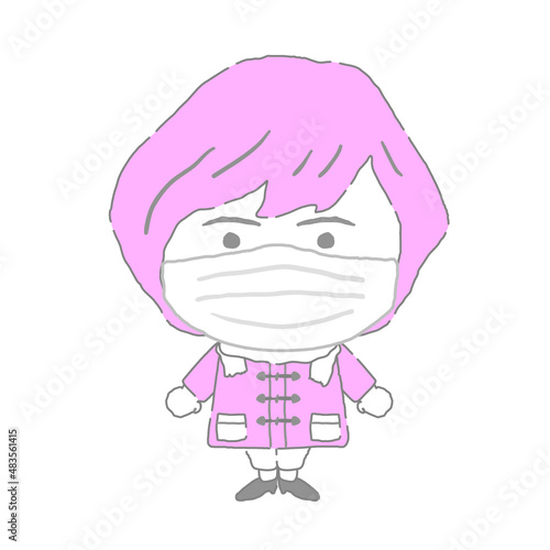 © Kurenainoneko, Obraz premium マスクをつけたコート姿の女性 シンプルカラー