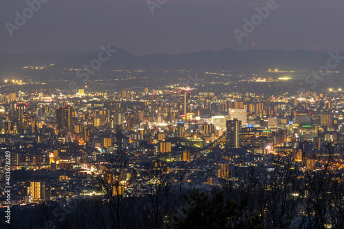 © 仁 藤原, Obraz premium とても美しい日本の岡山県岡山市の笠井山の夜景