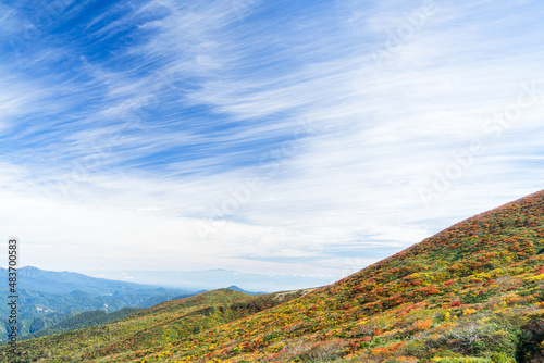 © Naoki Yamamoto, Naklejka premium 流れる雲と栗駒山の紅葉