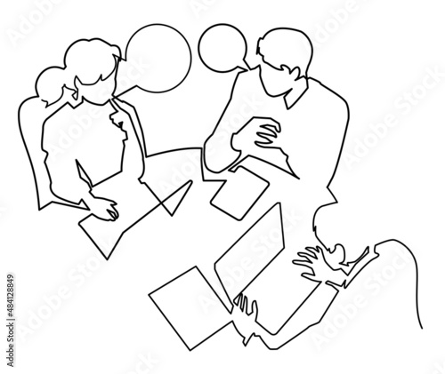 Obraz premium 一筆書きのシンプルイラスト-上から見た会議