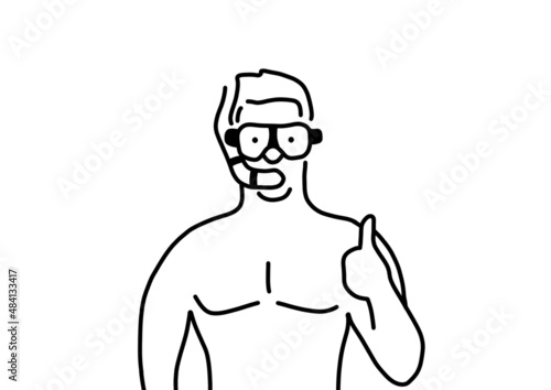 Obraz premium グッドポーズをしている、スキューバーダイビング中の男の人。
