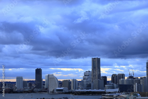 © ziggy, Fototapeta premium 新子安から見た横浜みなとみらい21 (曇り空)