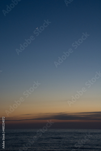 © kinpouge, Obraz premium 静かな海の夕暮れと三日月