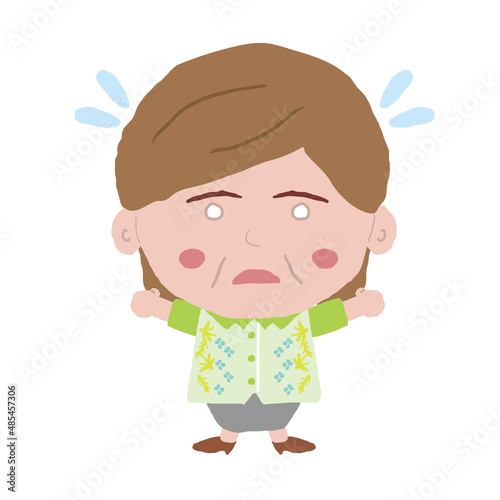 © Kurenainoneko, Obraz premium 沖縄のかりゆしウェアを着た中年女性がびっくりする