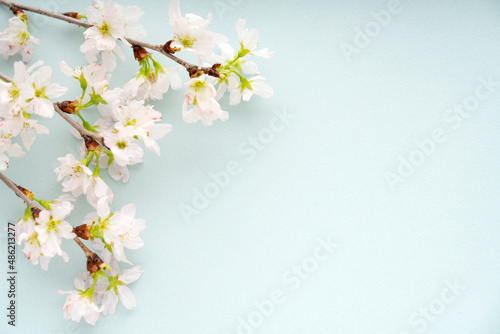 Fototapeta premium 水色の背景に置いた桜