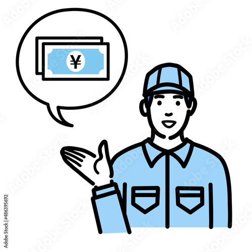 © トワトワ, Obraz premium 笑顔でお金の説明をしている作業服の若い男性