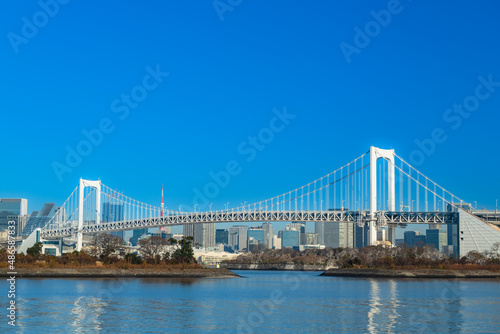 Fototapeta premium 東京お台場の青空に映えるレインボーブリッジ