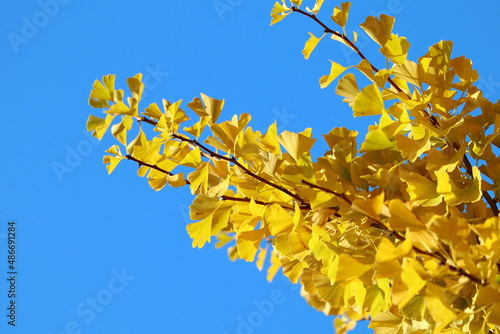 © NOBUTA, Obraz premium 秋のイチョウと青空