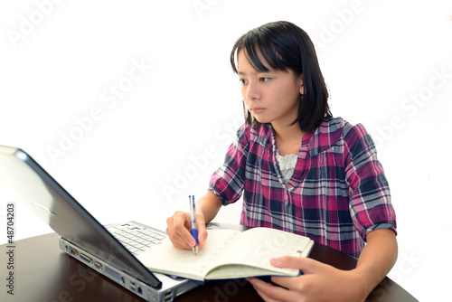 © sunabesyou, Fototapeta premium インターネットで調べ物をする女の子