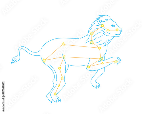 © elico-polo, Obraz premium しし座の星座絵と星の配置、白背景