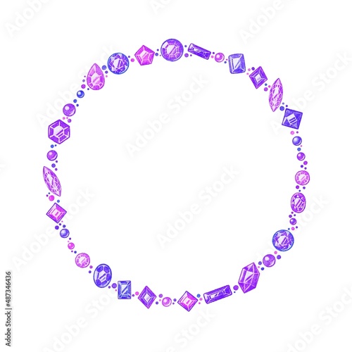Obraz premium 水彩の紫色宝石リース・フレームセット ラスター素材