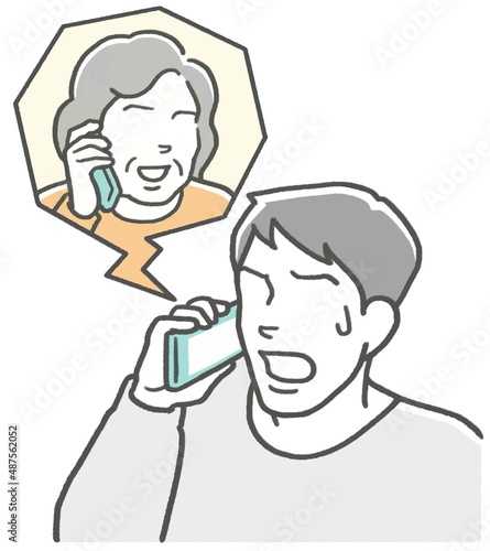 © Namiuchi Beroko , Obraz premium 電話で母親から世間話を聞かされ、困る息子