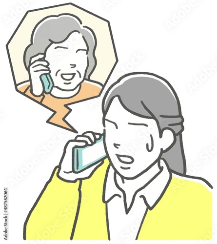 © Namiuchi Beroko , Fototapeta premium 電話で母親から世間話を聞かされ、困る娘