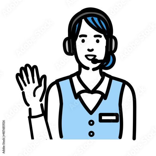 © トワトワ, Obraz premium 片手を上げて笑顔で挨拶をしているオペレーターの若い女性
