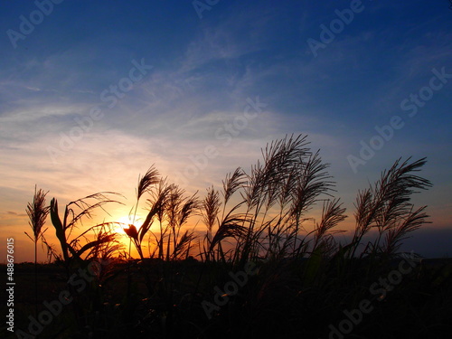 © rin-tkyhys, Obraz premium 朝日に照らされたススキの穂